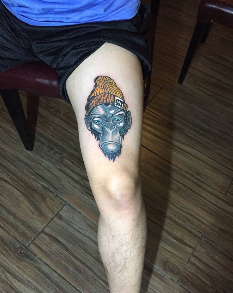 • T网红王老大花腿龙纹身图片_腿部新传统纹身图案
