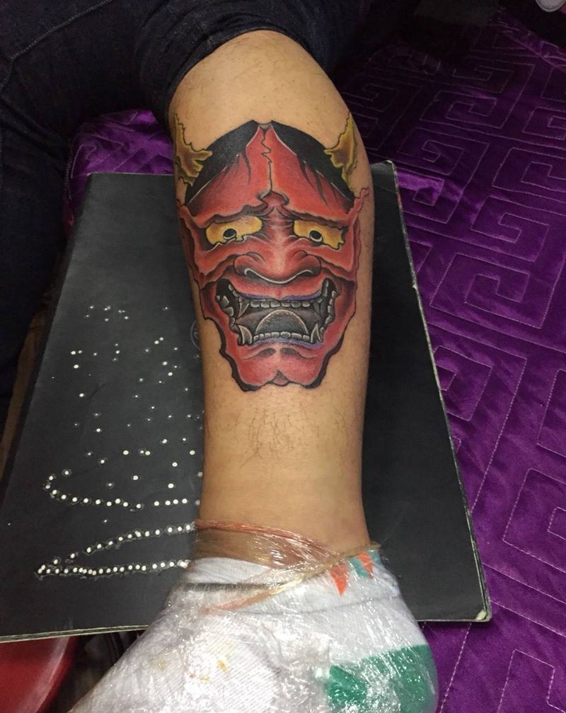 当前位置: 首页 >浙江省绍兴市纹身店-上虞魔鬼堂纹身工作室纹身图案>小腿般若完成纹身图片