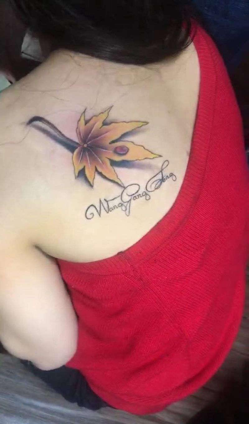 当前位置: 首页 >浙江省绍兴市纹身店-上虞魔鬼堂纹身工作室纹身图案>枫叶纹身图片