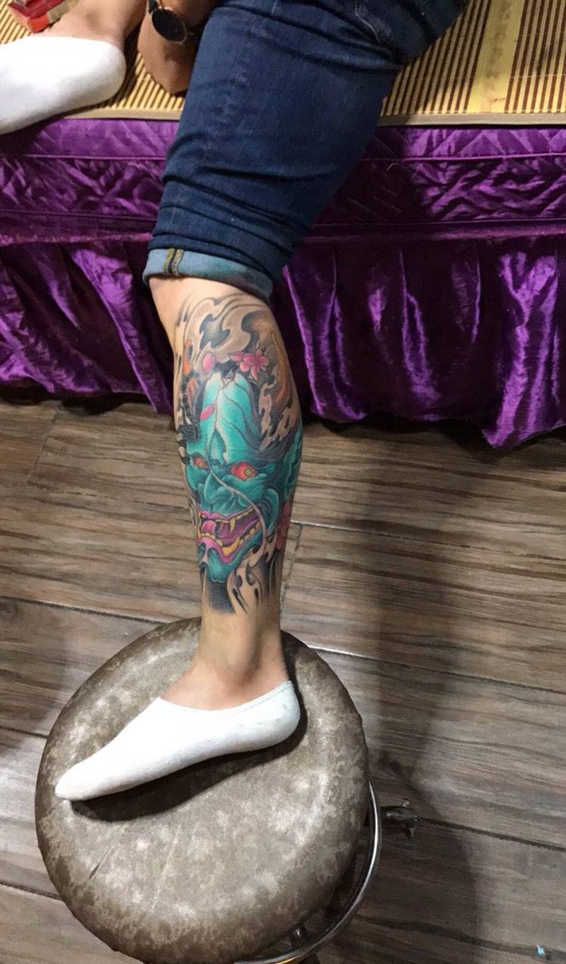 • T网红王老大花腿龙纹身图片_腿部新传统纹身图案