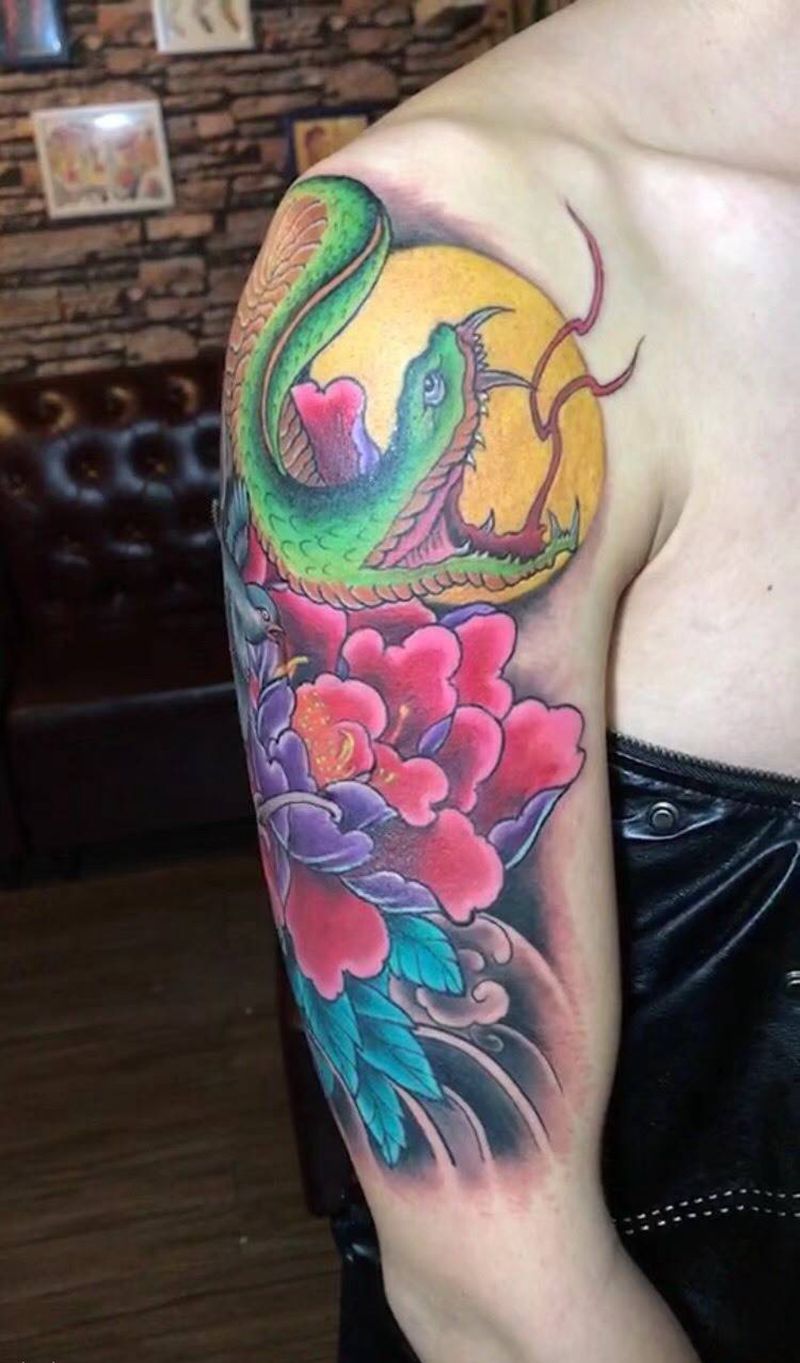 • T网红王老大花腿龙纹身图片_腿部新传统纹身图案