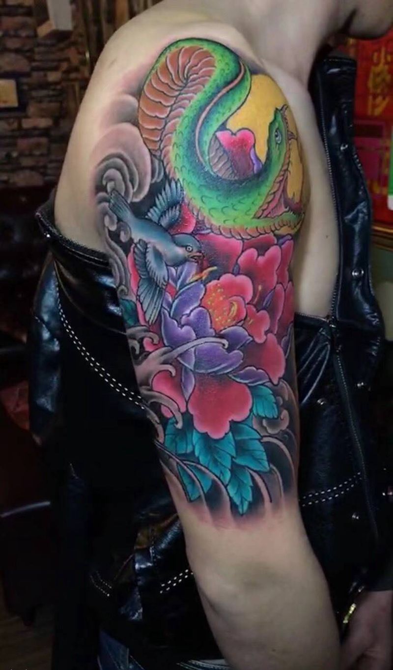 • T网红王老大花腿龙纹身图片_腿部新传统纹身图案