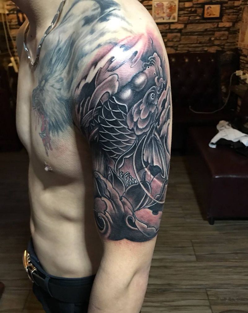 当前位置: 首页 >浙江省绍兴市纹身店-上虞魔鬼堂纹身工作室纹身图案>鲤鱼完成纹身图片