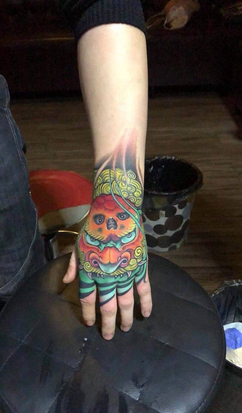 当前位置: 首页 >浙江省绍兴市纹身店-上虞魔鬼堂纹身工作室纹身图案>手背唐狮纹身图片