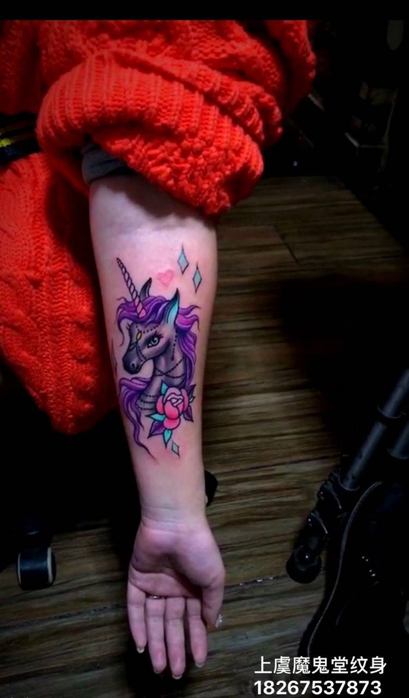 当前位置: 首页 >浙江省绍兴市纹身店-上虞魔鬼堂纹身工作室纹身图案>独角兽纹身图片