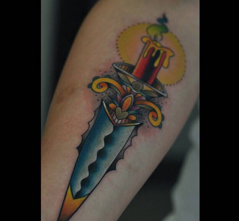 • T包小腿吹火男+阿多福纹身图片_腿部老传统新传统吹火男阿