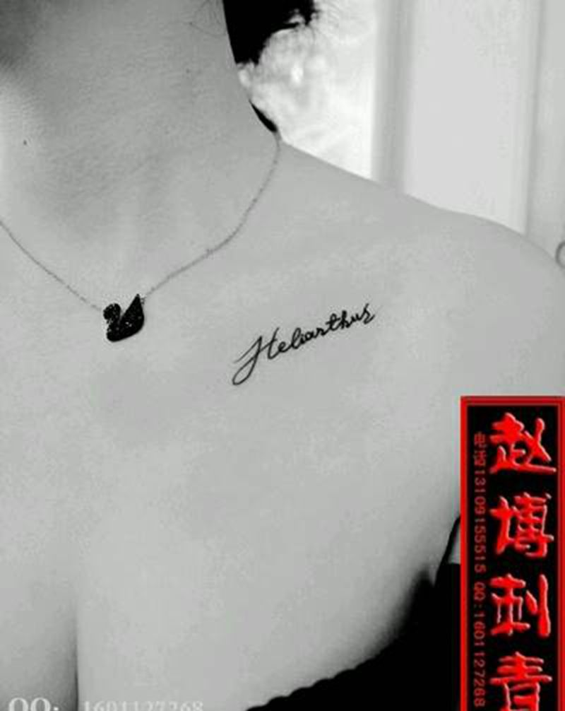 锁骨小清新英文纹身纹身图片_胸部清新字符成品纹身图案