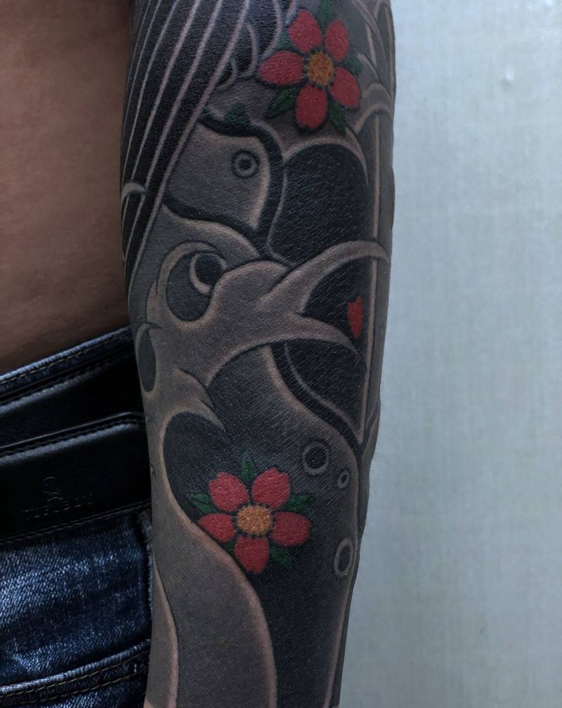 鲤鱼樱花纹身图片_手臂老传统纹身图案