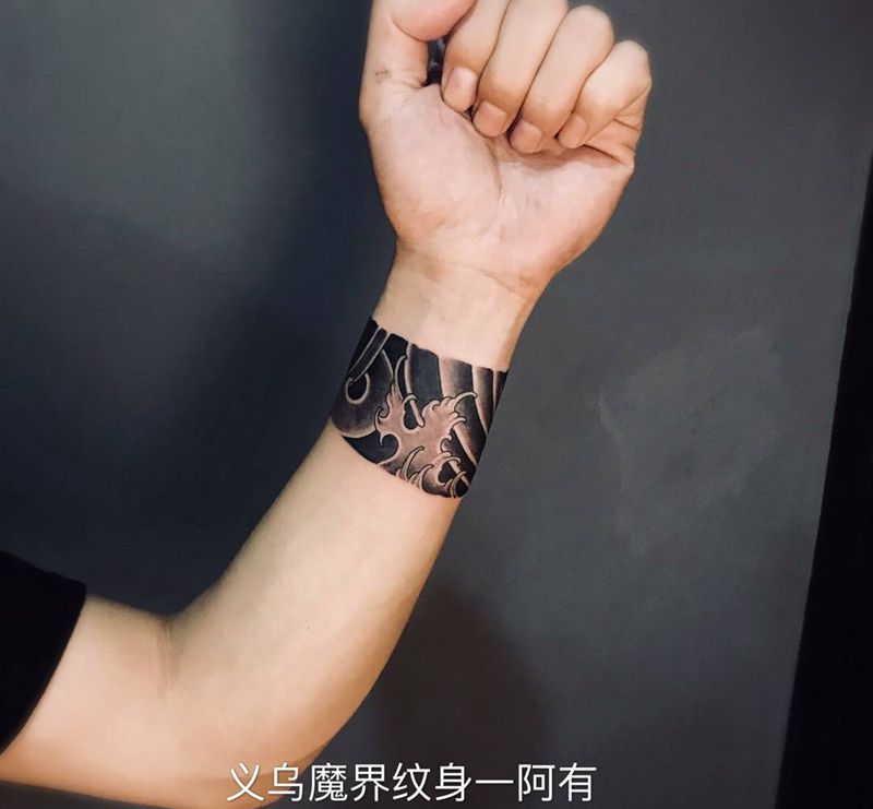 手环臂环纹身图片_手臂手部新传统老传统手环臂环浪花雾纹身图案