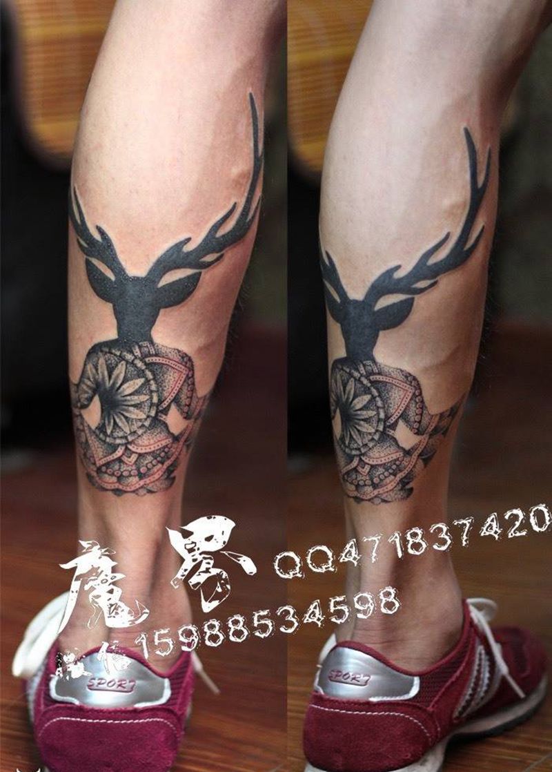 点刺鹿纹身图片_成品脚部手臂清新宗教原创腿部习俗动物静物纹身图案