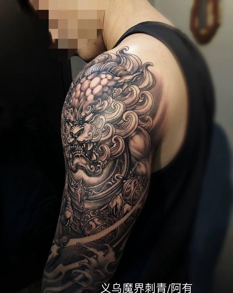 当前位置: 首页 >浙江省金华市纹身店-义乌魔界纹身纹身图案>唐狮纹身图片_手臂手部新传统老传统唐狮狻猊纹身图案
