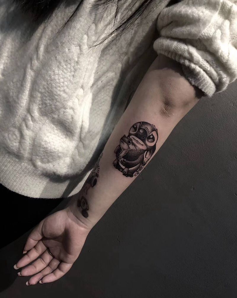 当前位置: 首页 >浙江省金华市纹身店-义乌魔界纹身纹身图案>小纹身作品纹身图片_手臂胸部点刺水墨鹤木偶花纹身图案