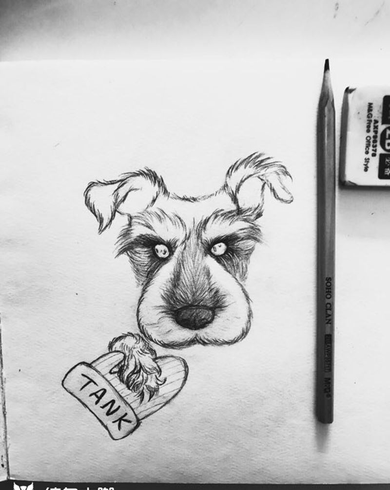 设计狗狗雪纳瑞纹身图片_手部手臂欧美写实New School狗狗雪纳瑞小狗纹身图案