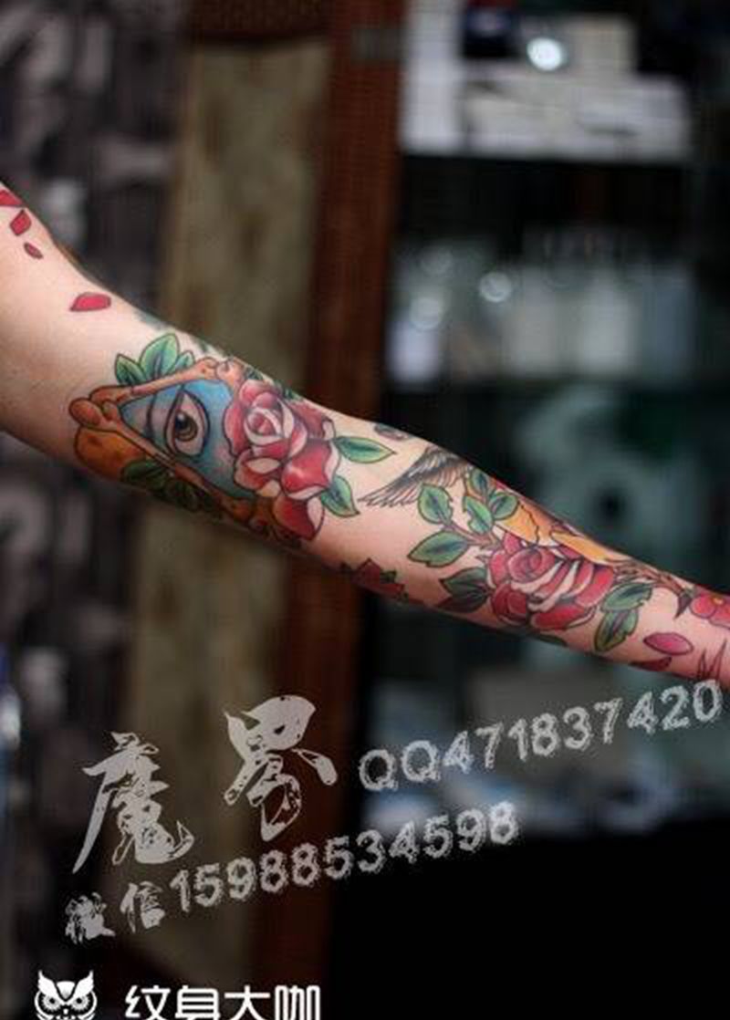 义乌魔界刺青作品纹身图片_成品手部手臂欧美人物宗教动物植物写实纹身图案