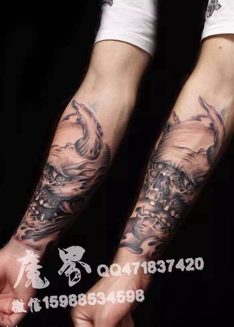 义乌魔界刺青作品纹身图片_成品手部手臂欧美人物宗教动物植物写实纹身图案