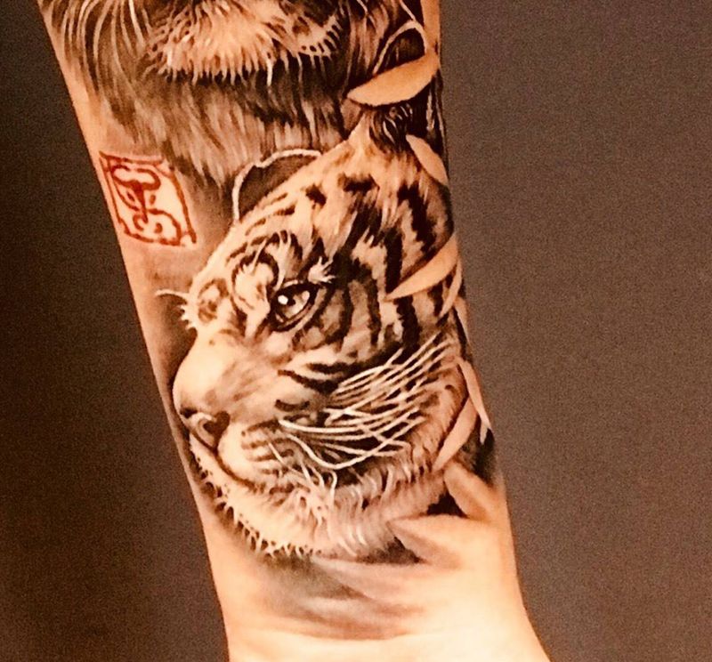 当前位置: 首页 >浙江省金华市纹身店-义乌魔界纹身纹身图案>老虎纹身图片_成品原创动物手臂传统习俗写实手部胸部背部纹身图案