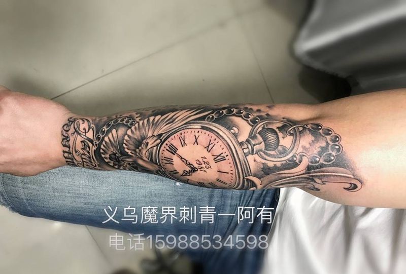 怀表包小臂纹身图片_成品手臂手部习俗欧美字符原创写实清新纹身图案