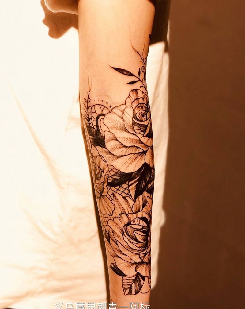 包小手臂一义乌魔界纹身阿标纹身图片_成品手臂手部欧美传统清新植物图腾腿部肩部纹身图案