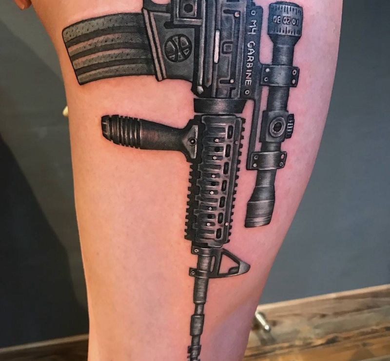 M416自动步枪纹身图片_成品欧美脚部腿部原创写实清新传统习俗背部纹身图案