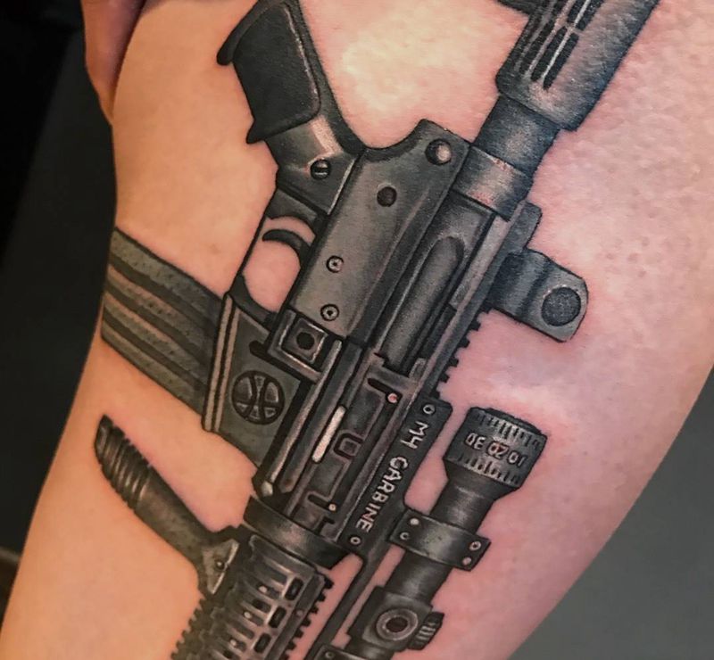M416自动步枪纹身图片_成品欧美脚部腿部原创写实清新传统习俗背部纹身图案