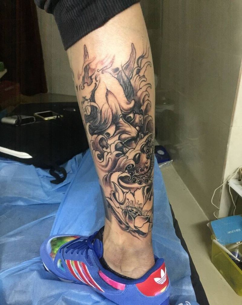 • T网红王老大花腿龙纹身图片_腿部新传统纹身图案
