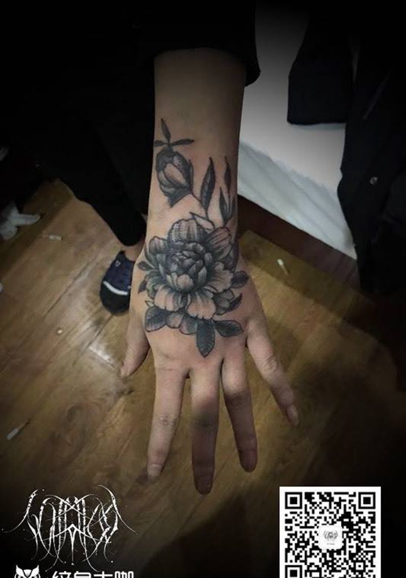 • 手背潮流时尚的玫瑰花眼睛纹身图案