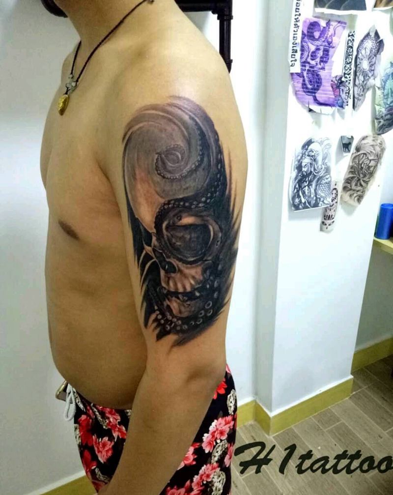 当前位置: 首页 >江苏省南通市纹身店-H1tattoo纹身工作室纹身图案>写实骷髅纹身图片