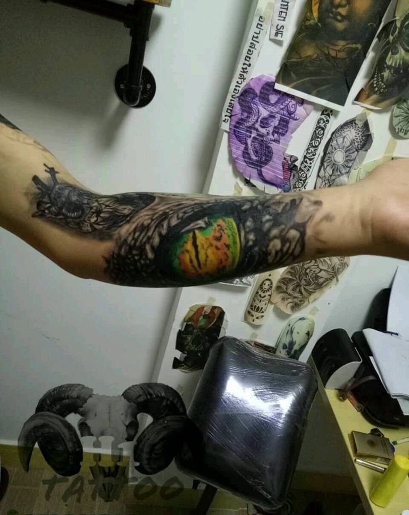 当前位置: 首页 >江苏省南通市纹身店-H1tattoo纹身工作室纹身图案>写实花臂局部 待续纹身图片