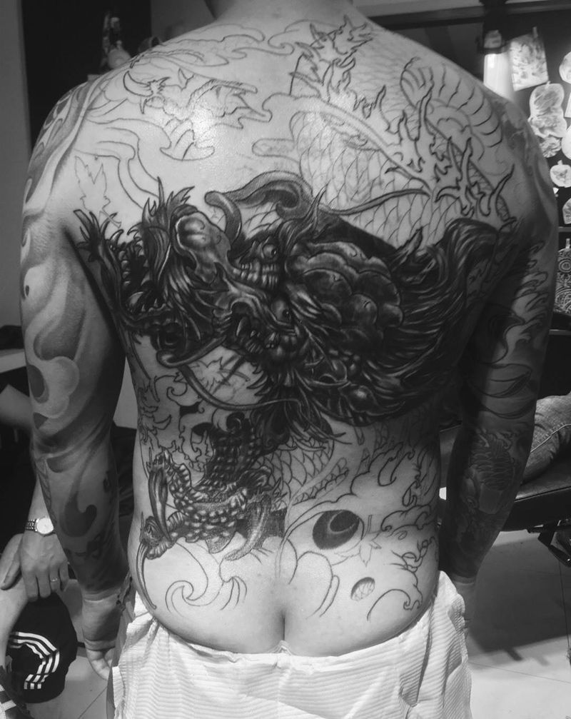 • T云龙九郎纹身图片_背部老传统云龙九郎纹身图案