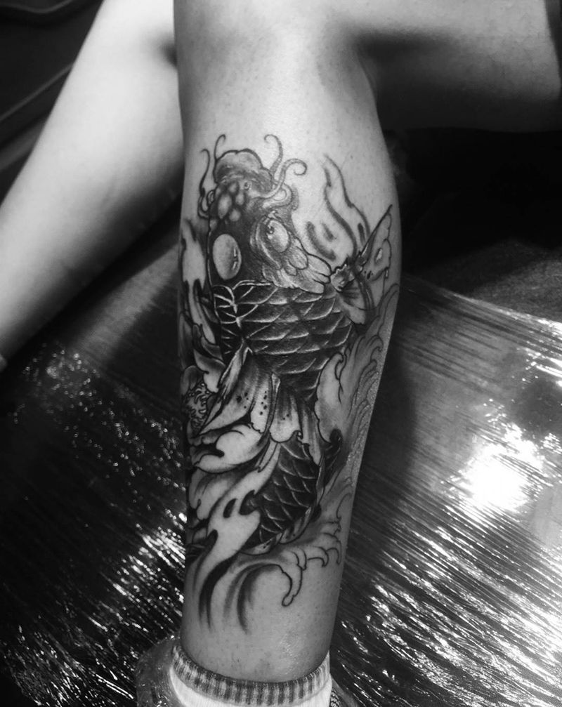 • T网红王老大花腿龙纹身图片_腿部新传统纹身图案