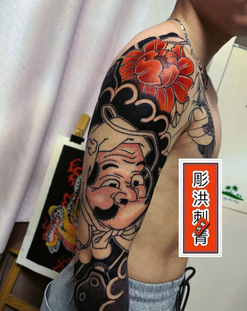 当前位置: 首页 >浙江省金华市纹身店-彫洪刺青纹身图案>火男达摩蛋纹身图片_手臂老传统纹身图案