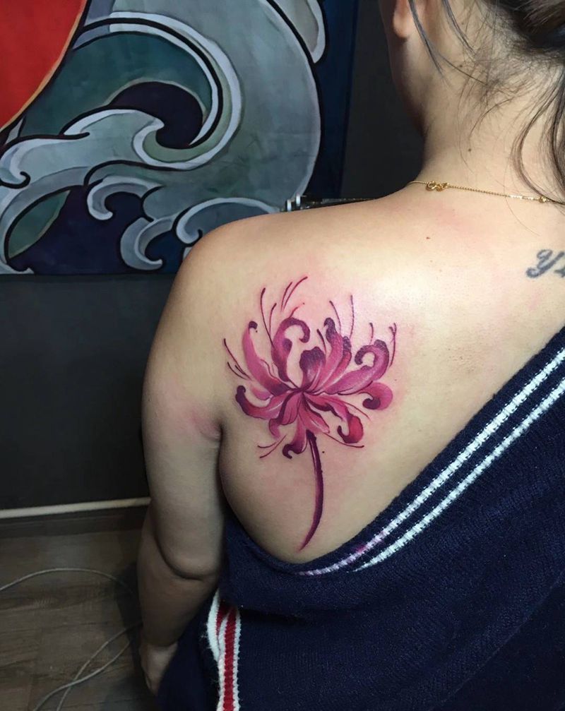 当前位置: 首页 >浙江省金华市纹身店-龙轩刺青纹身图案>花纹身图片_胸部背部新传统水彩纹身图案