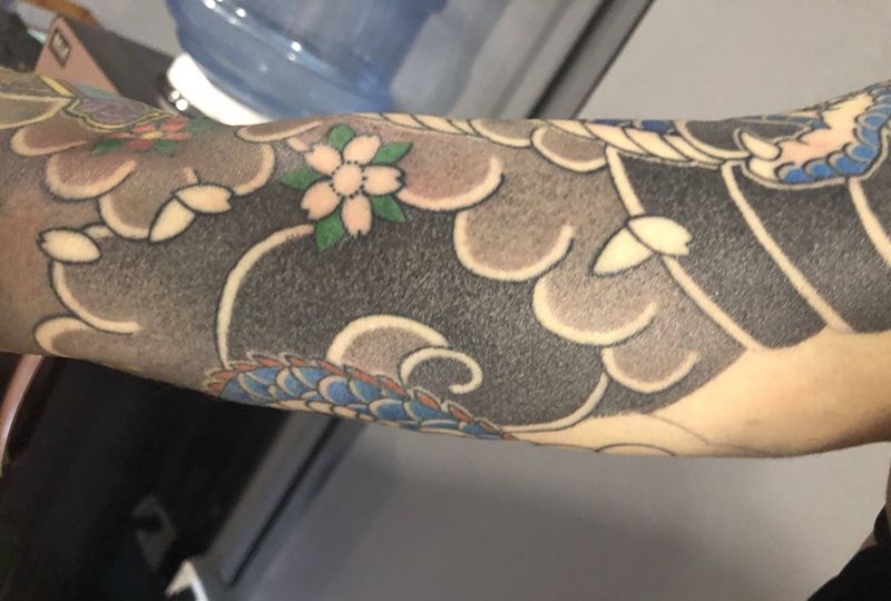 当前位置: 首页 >浙江省金华市纹身店-凡度刺青纹身图案>花臂七分袖纹身图片_手臂老传统龙日式老传统纹身图案