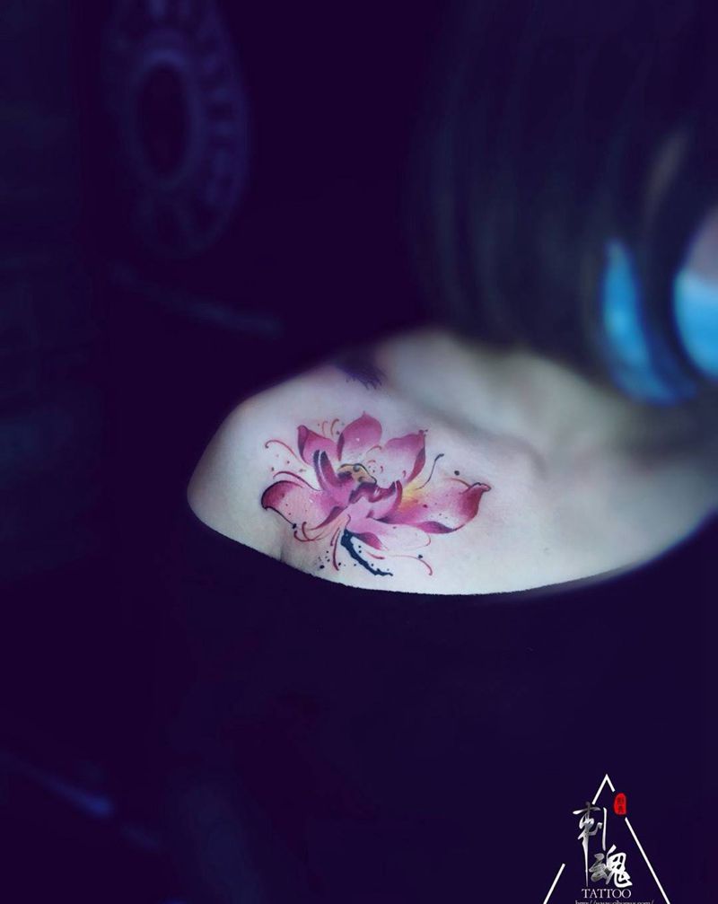 • 女性大花胸纹身_43张霸气漂亮的女性大花胸纹身图案作品