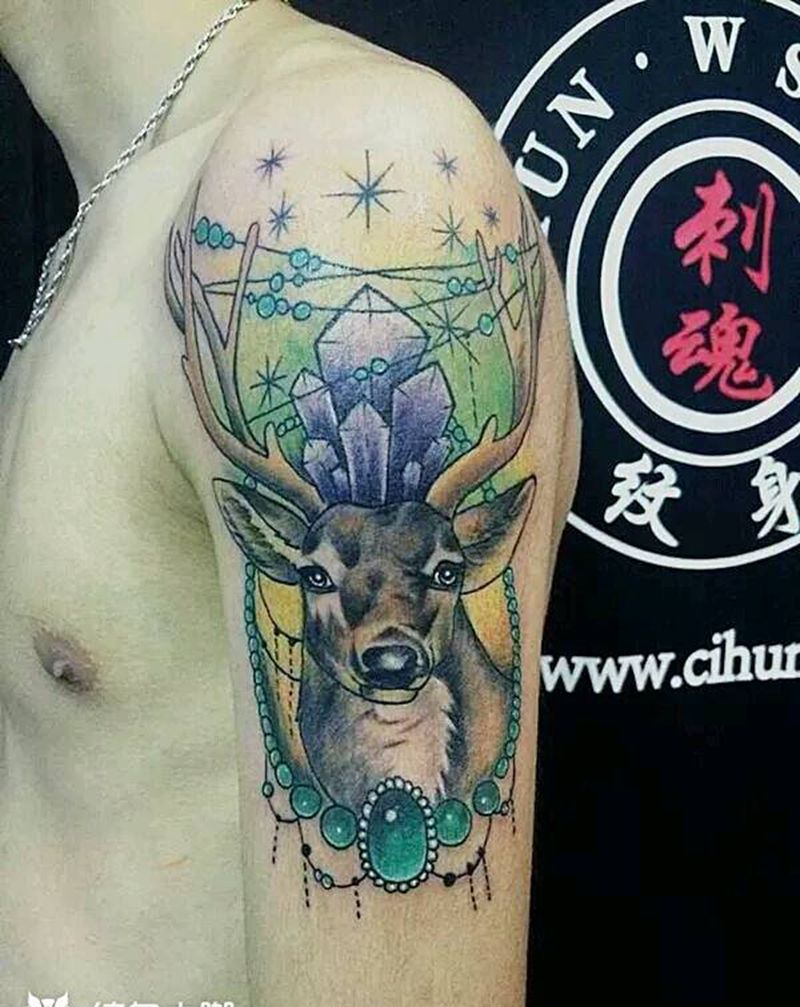当前位置: 首页 >浙江省金华市纹身店-刺魂纹身纹身图案>鹿纹身图片