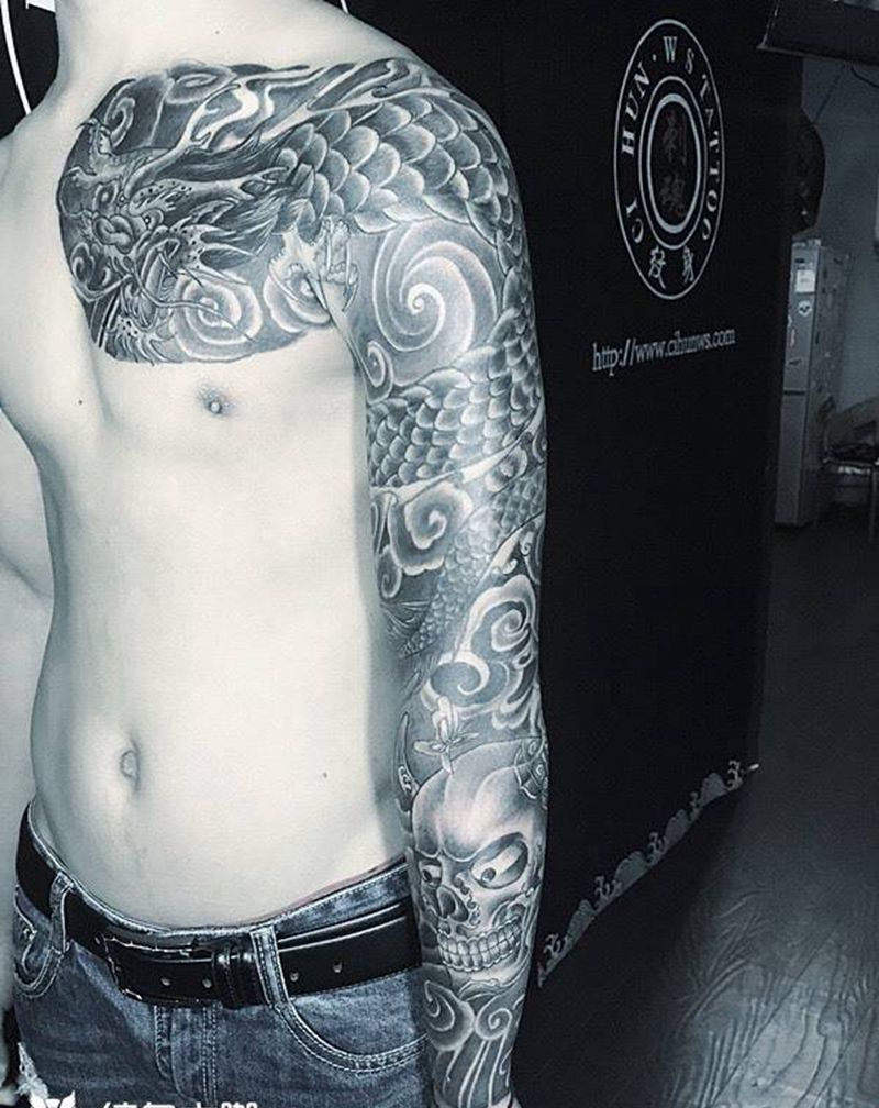 修改老式过肩龙 添加花臂纹身纹身图片