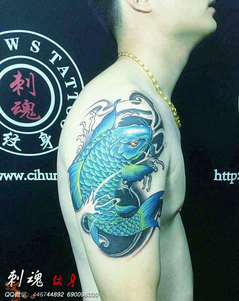 • 纹身吧推荐的披肩图腾半胛纹身图案作品展示