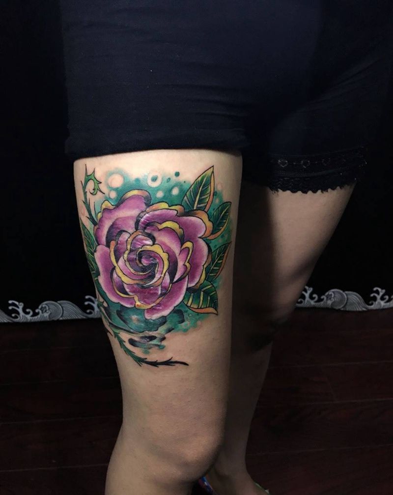 • T网红王老大花腿龙纹身图片_腿部新传统纹身图案