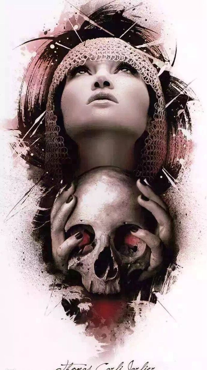 欧美泼墨水彩纹身图片_手稿欧美人物鬼神纹身图案