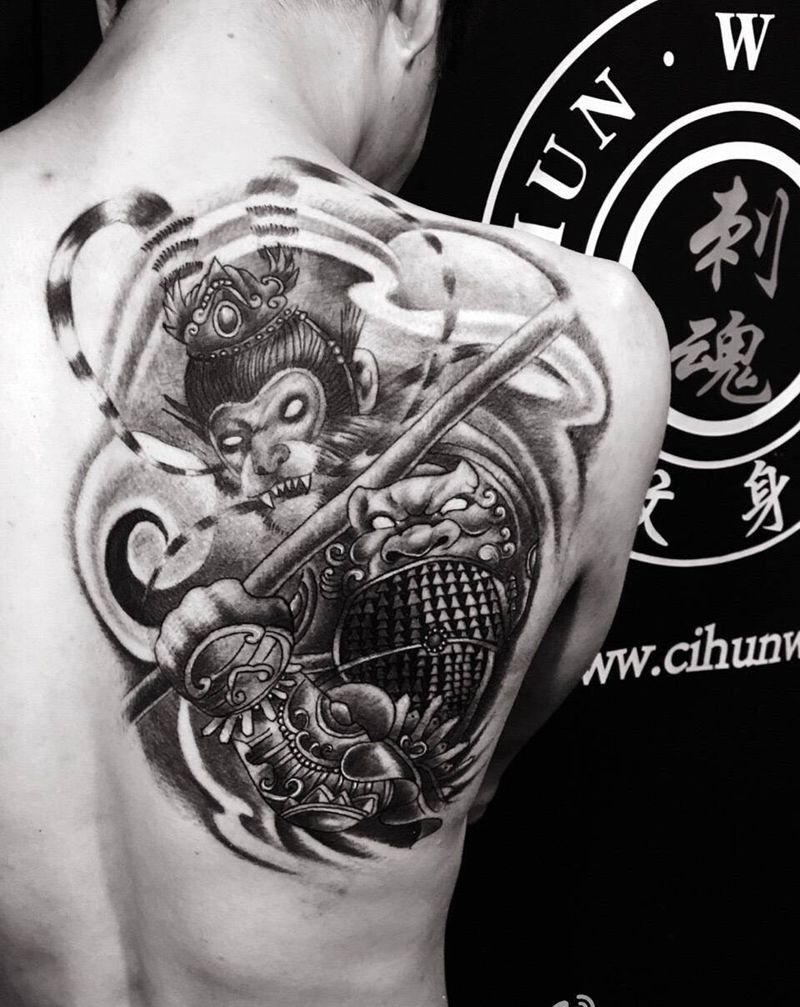 齐天大圣纹身图片_成品背部传统人物纹身图案