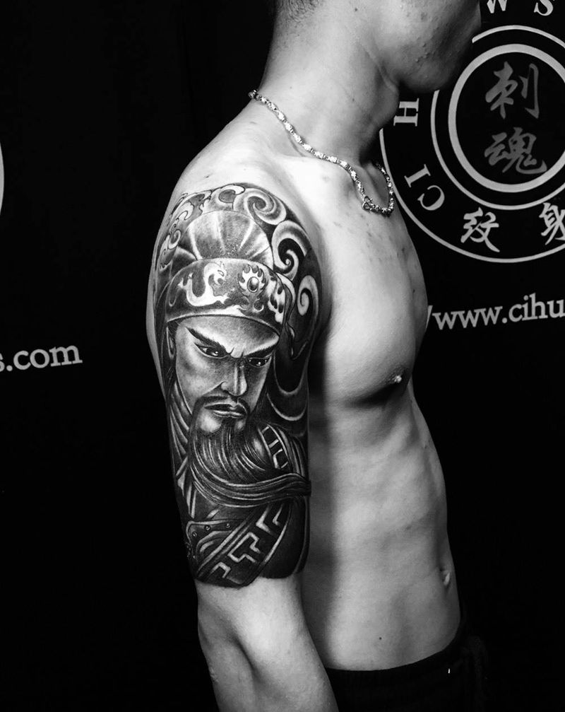 当前位置: 首页 >浙江省金华市纹身店-刺魂纹身纹身图案>#关羽纹身#纹身图片_成品手臂传统人物纹身图案