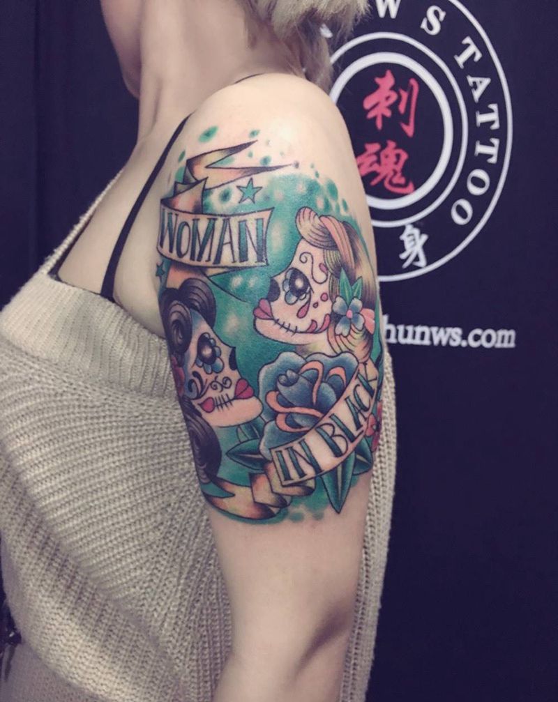 当前位置: 首页 >浙江省金华市纹身店-刺魂纹身纹身图案>僵尸女孩纹身图片_成品手臂欧美人物原创纹身图案