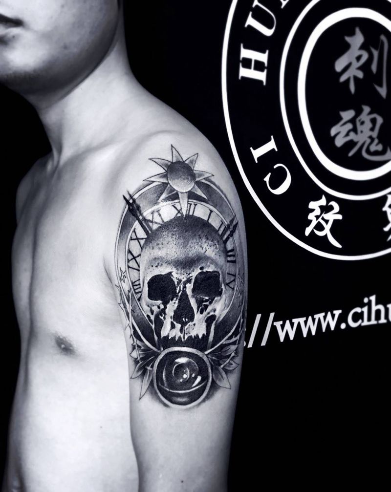 当前位置: 首页 >浙江省金华市纹身店-刺魂纹身纹身图案>骷髅怀表纹身纹身图片