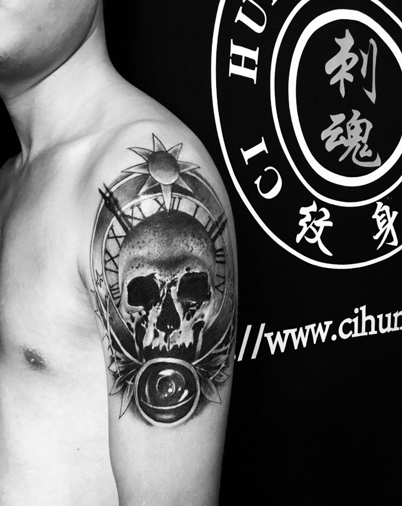 当前位置: 首页 >浙江省金华市纹身店-刺魂纹身纹身图案>骷髅怀表纹身纹身图片