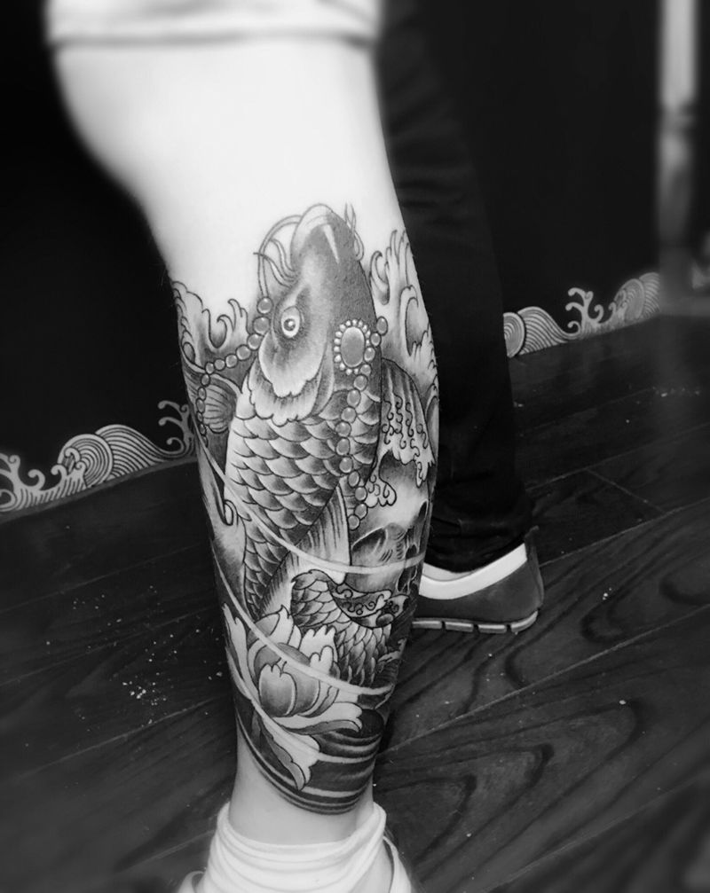 锦鲤纹身图片_成品腿部传统动物纹身图案