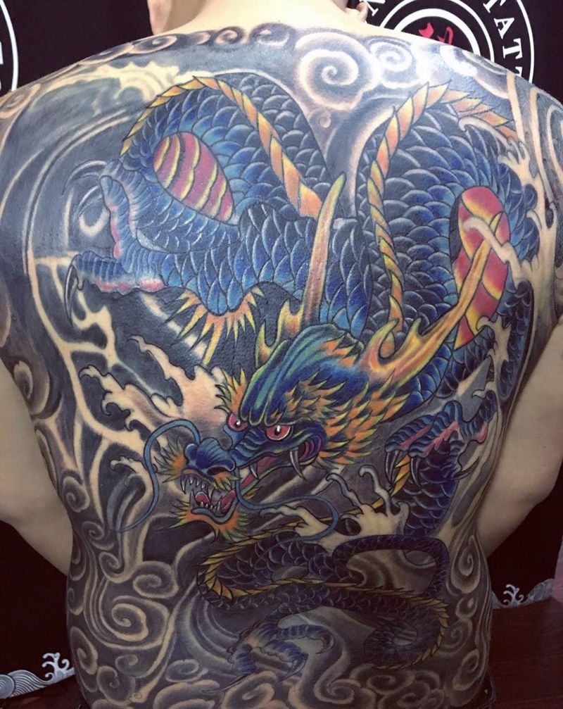 • T云龙九郎纹身图片_背部老传统云龙九郎纹身图案