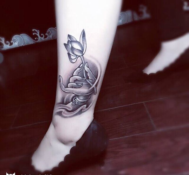当前位置: 首页 >浙江省金华市纹身店-刺魂纹身纹身图案>佛手莲花纹身图片_腿部成品手稿传统几何人物纹身图案