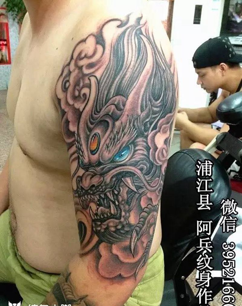 当前位置: 首页 >浙江省金华市纹身店-浦江 阿兵纹身纹身图案>大臂龙头纹身图片