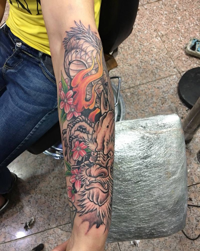 • T网红王老大花腿龙纹身图片_腿部新传统纹身图案