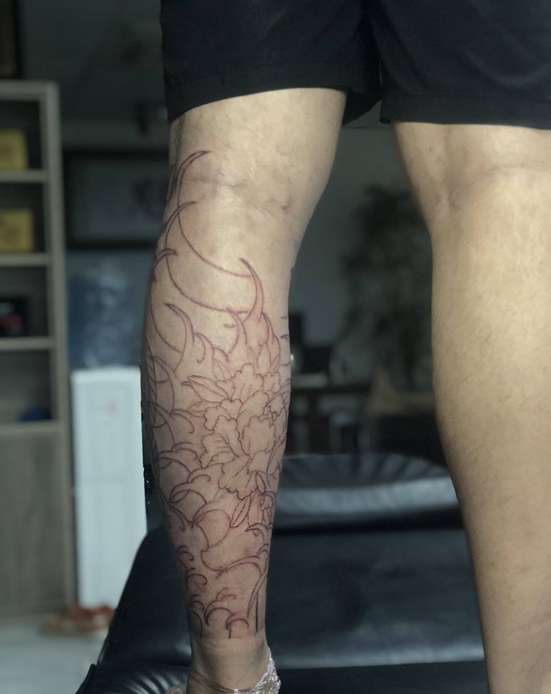 • T网红王老大花腿龙纹身图片_腿部新传统纹身图案